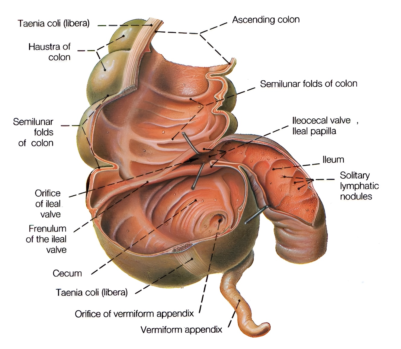 Рис. 2. Слепая кишка с илеоцекальным отверстием, имеющим заслонку