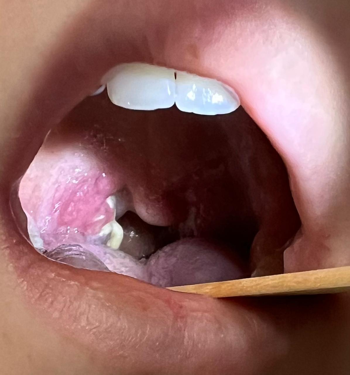 Боли в горле отмечались у 191 (60,4%) ребёнка: умеренной интенсивности –– у 140 (73,3%), выраженные –– у 39 (20,4%). Налёты на миндалинах выявлялись у 260 (82,3%) человек: в лакунах –– у 231 (88,8%), в виде фолликулов –– у 29 (11,2%). Гнойные налёты жёлтого цвета наблюдались у 111 (42,7%), белого –– у 149 (57,3%) больных.