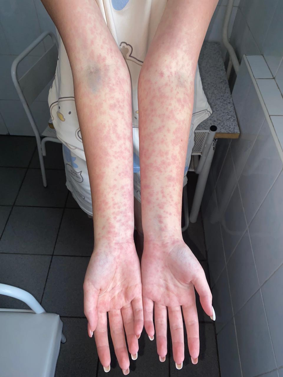 Рис. 5. Амоксициллиновая сыпь на конечностях
