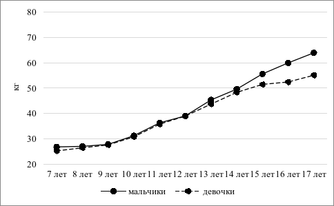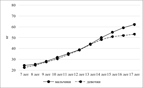 Оценка формирования массы тела школьников 7–17 лет в сорока субъектах Российской Федерации
