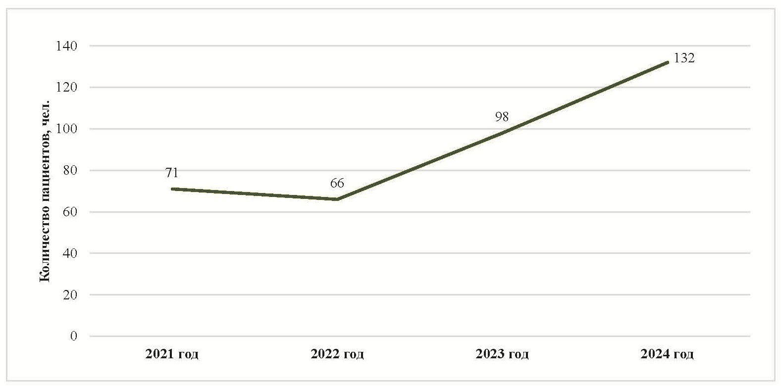 Министерство здравоохранения Ярославской области (ЯО) эффективно сотрудничает с Фондом. При анализе данных отчётов Фонда за 2021-2024 гг. [2] установлена динамика роста оказания лекарственной помощи детям с редкими заболеваниями в регионе (рис. 1).
